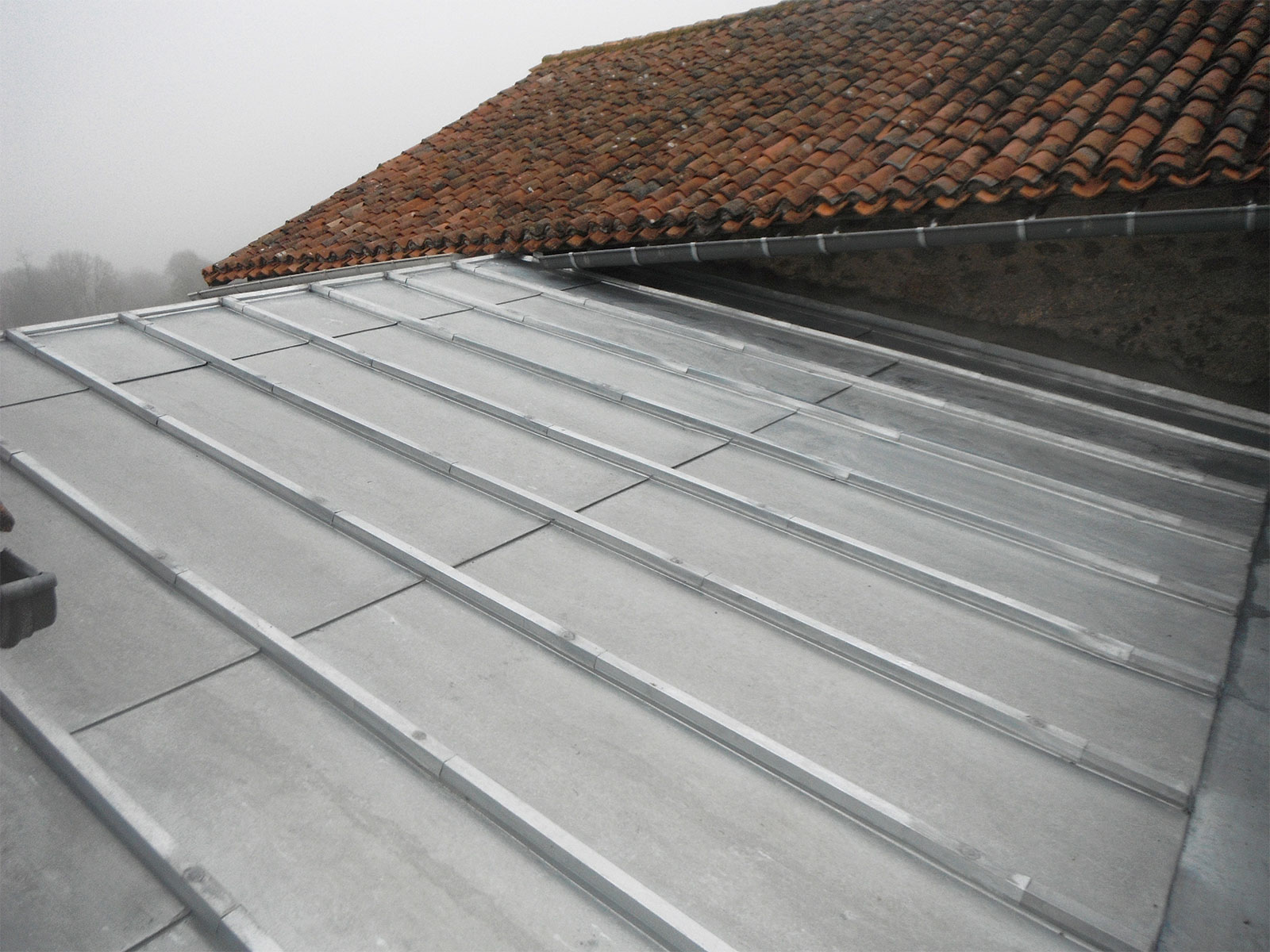 Une couverture zinc à tasseaux permet d’obtenir un résultat visuel moderne et esthétique, allié à une grande efficacité. Elle permet également d’intervenir sur des toitures à très faible pente.