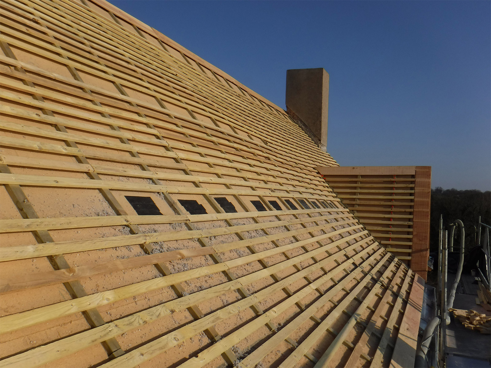 Nous utilisons uniquement des matériaux d’isolation écologique, tels que la ouate de cellulose, la laine de bois, la laine de chanvre… Non seulement le bilan carbone de ces matériaux est faible, mais en plus le taux de déphasage de la ouate de cellulose, par exemple, est très intéressant – adieu les surchauffes d’été ! N’hésitez pas à nous demander conseil.