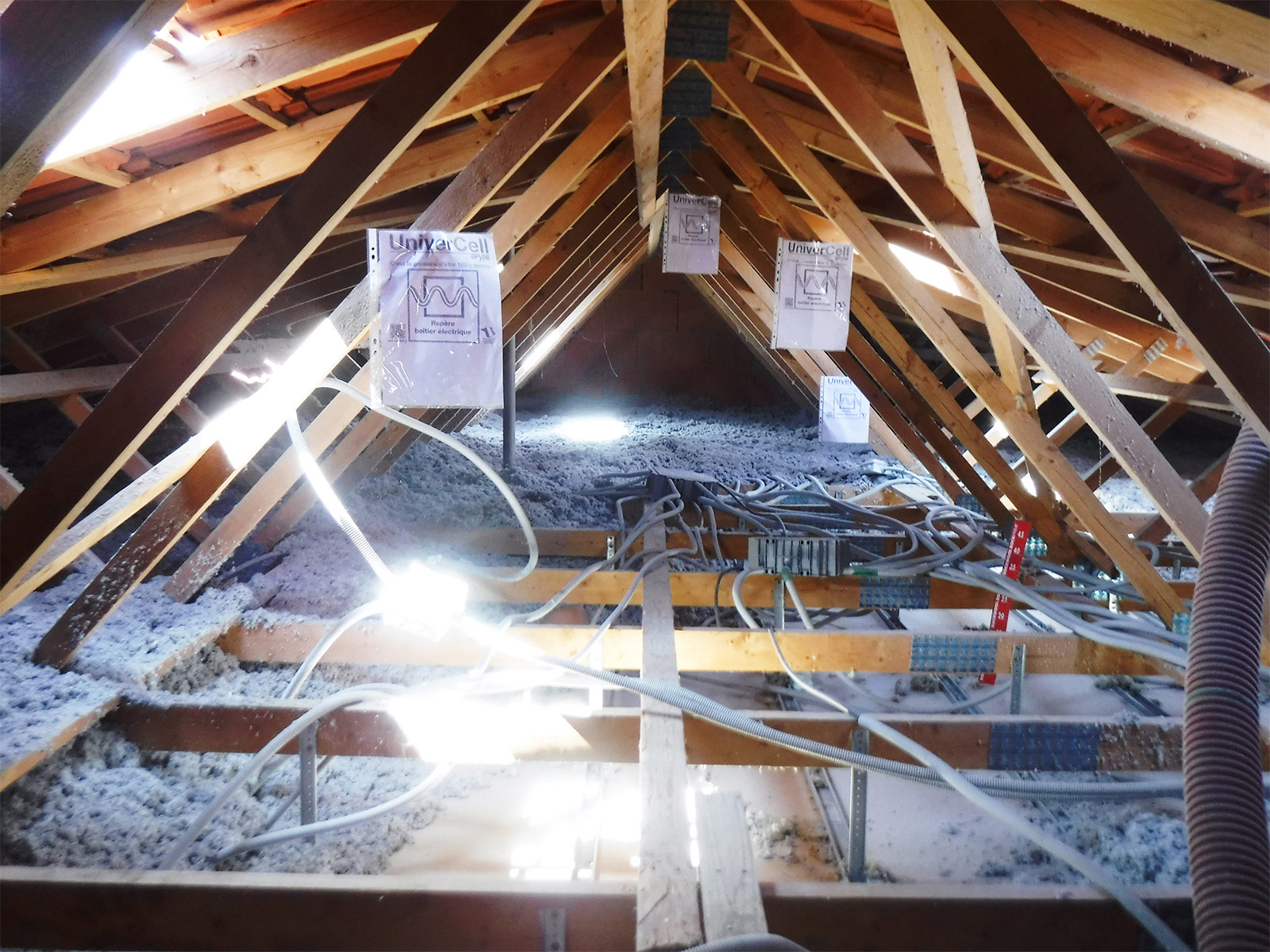 - Isolation (combles perdues, isolation sous rampant type sarking) – utilisation d’isolants écologiques